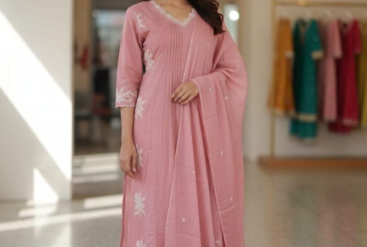 Refresh your ethnic wardrobe with this elegant Powder Blue Embroidered Suit Set, designed for understated grace and modern comfort.